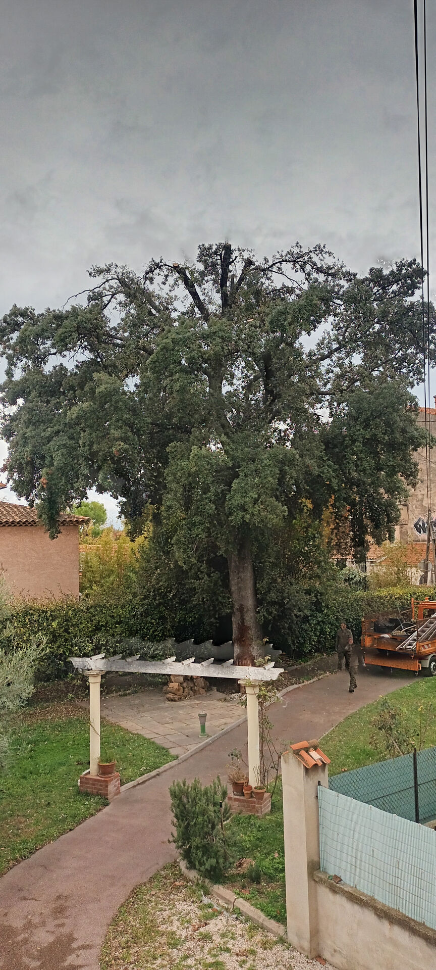 Jardin forêt de Provence à effectuée un couronnage sur un gros chêne au redon 9ème afin de le sécuriser car les maisons sont très proches de l'arbre. Un couronnage et eclaircissage ont été nécessaire afin de sécuriser l'arbre.