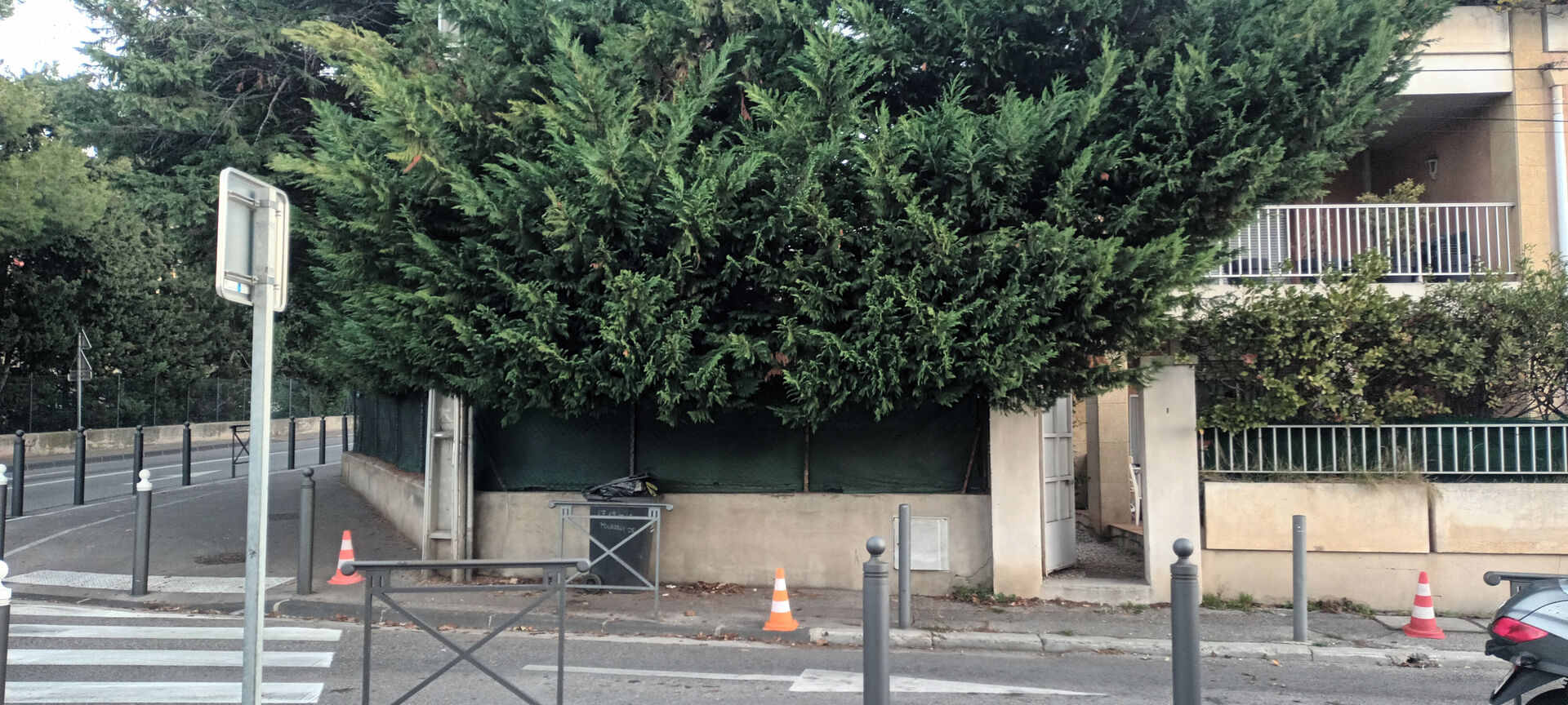 Taille stricte d'une haie de cyprès à la fourragère dans le 12ème. La haie dépassé sur la route ainsi que dans les fils électriques. Jardin.foret de Provence à été obligé de tailler jusqu'au bois afin de garantir le passage des camions ainsi que des piétons. Le client bénéficie du crédit d'impôt et déduira 50%de sa facture aux impôts.